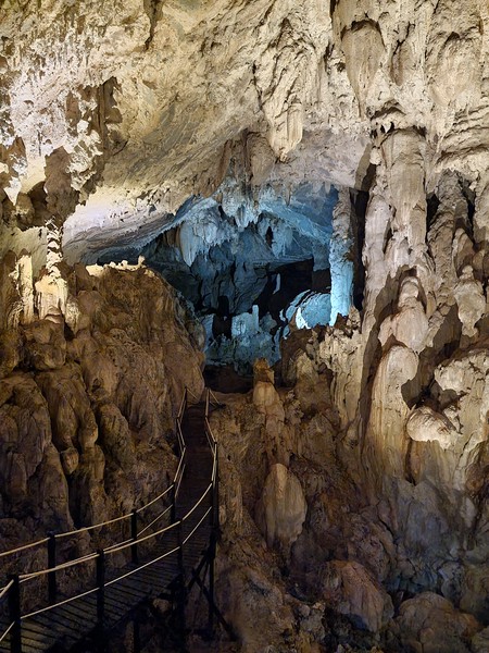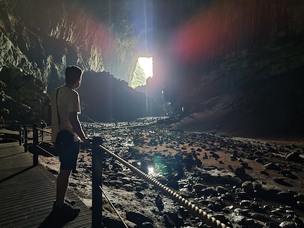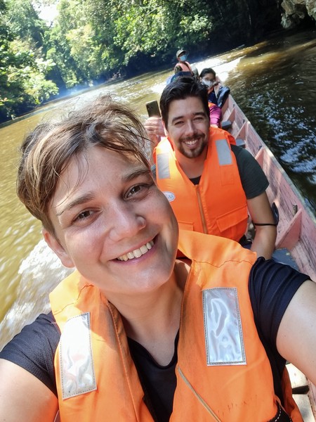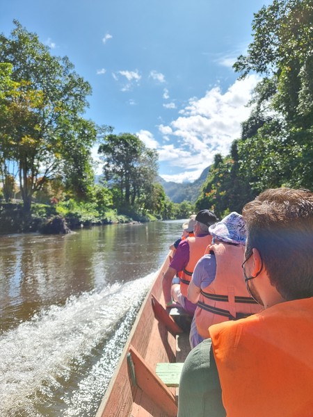 Deze ochtend konden we eerst ontbijten en vertrokken we om 8.45 naar het park. Om 9 uur begon de tocht naar de Clearwater en Wind cave. Deze zijn alleen via het water te bereiken, dus met longboats (kleine, smalle en lange boten die heel ondiep in het water liggen) varen we over de rivier door het enorme groen om ons heen. Wat genieten we hier allebei intens van! We maakte een korte stop bij een originele stam, waar wij onze bedenkingen bij hebben… doordat elke toerist hier dus stopt en op een markt met handgemaakte spullen worden losgelaten, zonder al te veel uitleg over de stam. We komen aan bij de wind cave waar we doorheen lopen en ons weer verwonderen over alle formaties. Na een ander stukje varen komen we bij de Clearwater cave, waar een enorm stuk begaanbaar is en weer zeer indrukwekkend is door de grote ervan. Weer een heerlijk stukje terug varen, over de rivier in de zon met de mooie uitzichten.