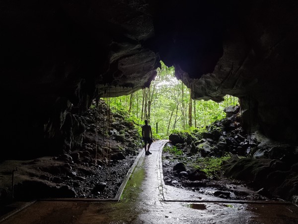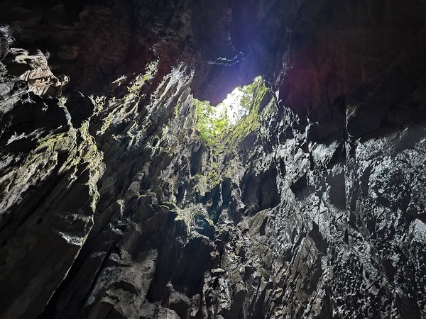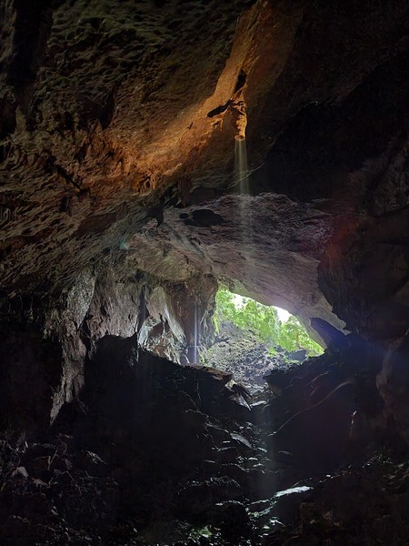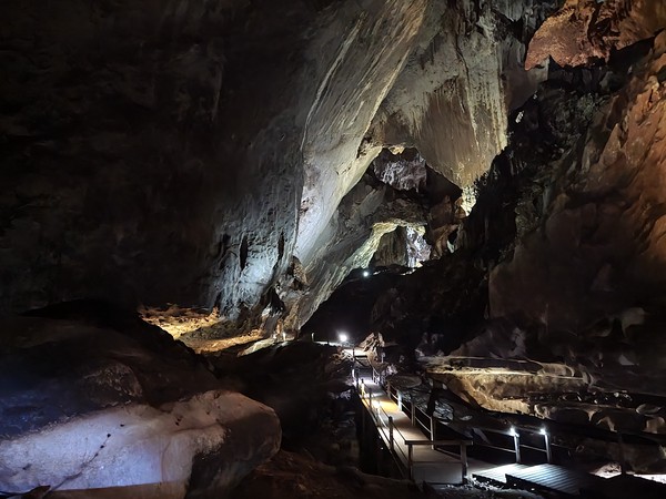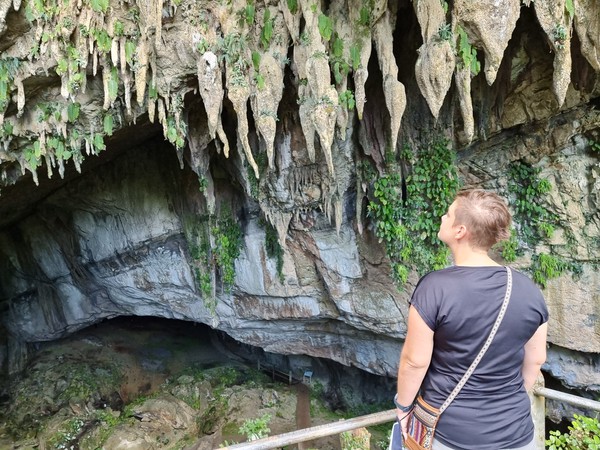 Na een rustmoment in onze decadente grote kamer, hahaha! Ja… het voelt wel wat onwennig! Met koffie, die we vers kunnen zetten in de kamer (en beter is dan bij het ontbijt, dit wisten we doordat we gisteren dit ook al lekker geprobeerd hadden). We gingen rond 13.45 weer naar het park, waar we startte aan de Deer en Lang cave wandeling. Het was een uurtje in een lekker tempo lopen naar deze grotten, tussendoor stonden we alleen stil bij een aantal planten en bomen. Hier had de gids dan een verhaal over, welke vooral gingen over de blowpipe die ze hier bij de traditionele stammen gebruiken. We vervolgde de tour eerst door de Lang cave, vernoemd naar de ontdekker. Deze zat vol met gigantische en indrukwekkende formaties: stalagtieten en stalagmieten. Hilde wilt hier heel graag de vraag stellen: “Horen jullie bij deze woorden ook altijd, want stalagtieten die hangen en stalagmieten die staan?!”. Na deze mooie grot, liepen we door naar de Deer cave. Deze heet zo omdat deze ontdekt is omdat hier veel, je raadt het al, herten zaten. De stammen kwamen hier jagen en ontdekte dus op die manier deze grot. Deze grot heeft de grootste opening in de wereld en is hier vooral heel indrukwekkend om dus zijn gigantische oppervlakte en opening, maar daarnaast ook door de miljoenen vleermuizen die hier leven. Met het lopen door deze grot zien we een enorme zwart “vlek” tegen de bovenkant van de grot en de gids geeft aan dat dit allemaal vleermuizen zijn. Zijn verhaal wordt ook zeker bevestigd door de enorme berg vleermuizenpoep die zich onder de “vlek” heeft ontwikkeld. Na een wandeling door de grot, gingen we met zijn allen naar buiten waar we ons installeerde op de tribune. We hoefde niet meer lang te wachten, want binnen 10 minuten kwamen de eerste vleermuizen naar buiten. Wauw, we hebben dit ook gezien in Cambodja maar het blijft bijzonder. Daarbij zaten we bij deze aanschouwing midden in de jungle, op een soort houten tribune. In Cambodja zaten we langs de weg, waar we een biertje konden bestellen… die miste we dan wel weer! ;)