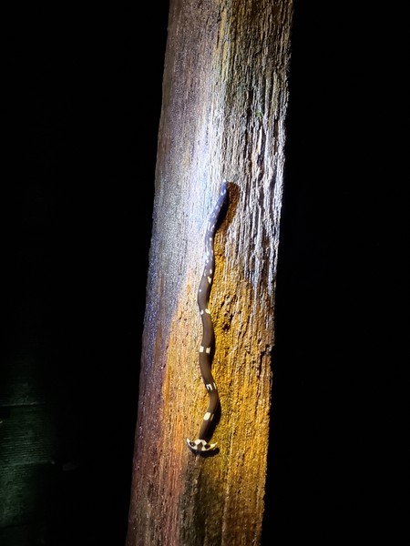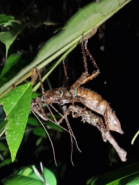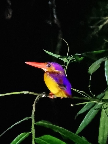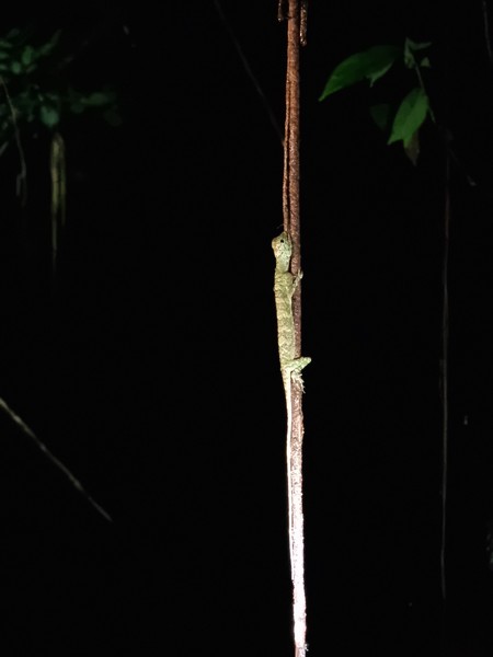 Terug naar het resort, in bad (ja nu je hem dan hebt) omkleden en eten. De nachtwandeling was weer volledig genieten én, niet geheel onbelangrijk, droog! We hoorde allerlei geluiden die je overdag niet hoort, met de meest vreemde geluiden die vooral van de veel verschillende kikkers komen. Naast ze gehoord te hebben, zijn we er verschillende tegen gekomen. Verder ook nog seksende wandelde takken, gekko’s, een vliegende salamander én een ijsvogel (Hilde haar favoriet!). Onze gids was weer echt super leuk en goed in het spotten van allerlei insecten en andere dieren. Terug naar het resort en in het heerlijke grote en zachte bed gedoken.