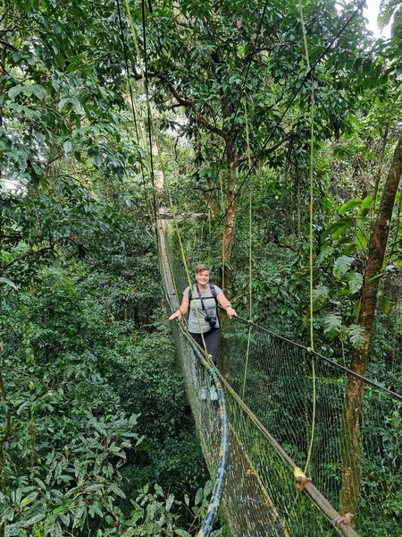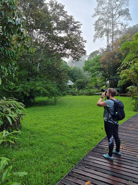 De wekker ging vroeg, we hadden de skywalk om 7 uur gepland… Eerst een stuk wandelen door de jungle in alle rust. Geen mensen die je tegenkomt en de geluiden uit de jungle zijn totaal verschillend dan de nacht ervoor. Je hoort heel rustig en zacht enkele vogels en dat is het voor even… Na een aantal trappen omhoog komen we op de canopy aan. Deze mogen we rustig over gaan lopen en vooral genieten van het uitzicht. We boffen enorm met het weer, het is droog en het zonnetje komt rustig door. Terwijl dat rustig verloopt, wordt het steeds drukker in geluiden om ons heen. Meer geluiden, maar vreemd genoeg zo rustgevend! We hebben (helaas, we hoopte nog stiekem op de neushoornvogel) niet veel wild gezien. Een aantal kleine vogels en vlinders, maar daar bleef het bij. Helemaal zen gingen we terug naar het resort, waar we heerlijk genoten van het ontbijtbuffet.