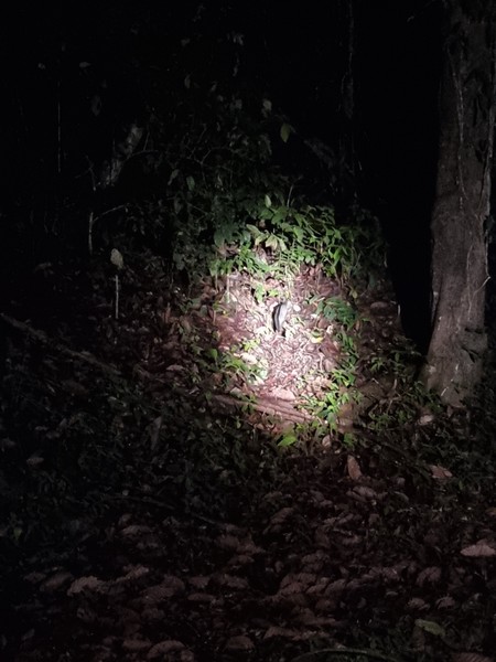 Deze avond worden we met de jeep rondgereden langs de bossen op zoek naar nachtdieren. We hebben niet zo heel veel dieren kunnen spotten deze avond, al had Hilde wel een aantal mooie vogels gespot. Ook een hele bijzondere, namelijk de frogmouth (die we later in het boek nog even opzochten). Op het einde hebben we van heel dichtbij een hele mooie civet vlakbij het kamp kunnen zien. Wat een plaatje!