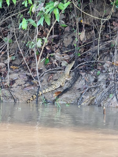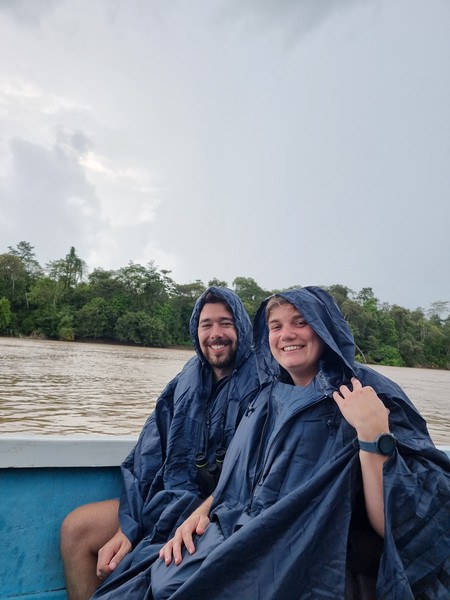 Die middag hebben we lekker spelletjes gedaan en genoten van de rust en de omgeving die goed te zien is vanaf het gezamenlijke gedeelte. Ineens was er toen een drukte! Twee busjes vol sloten aan bij onze teatime en daarna met zijn allen het bootje in… oef, dat was even anders dan dat we gewend waren. Daarbij hadden we Ryan in moeten wisselen omdat hij nu een privetour moest geven, waardoor wij een andere gids meekregen. Zowel wij als Tessa en Sjoerd, vonden dit toch wel erg tegenvallen. We gingen op pad in een grotere boot met een super donkere lucht, we spotte weer wat verschillende apen en een krokodil die we nog net in beweging zien schieten en het water in verdwijnt. Wat hebben die dieren een kracht en een snelheid, wanneer ze dat willen. Daarna begon het te regen! Hard te regenen!! We zijn eerder terug gegaan dan normaal, omdat het zo hard regende dat het niet leuk meer was! Dit is ook het regenwoud, we genieten van de groene kleuren en al het moois wat het gebied hier ons biedt. Maar voor al die kleuren groen, moet er zeker ook af en toe regen vallen… Het was jammer, maar wij hadden al zoveel moois gezien!!