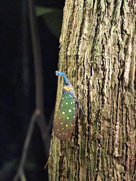 Na eten, hadden we nog een halfuurtje en toen begonnen we aan de nachtwandeling. Opzoek naar slapende vogels en misschien andere interessante dieren. Het was maar een klein rondje dichtbij het resort, maar toch vonden we een Ijsvogel (de grootste soort in Borneo), wat spinnen, interessante mieren en een slakje. En daar was die, de Slow Lorris! Bijna op dezelfde plek als dat ze hem gisteren gespot hadden, zo tof!! Na de wandeling, vonden we dat we wel iets te vieren hadden en namen we een lekker biertje samen. De rest was meteen naar bed, wij maakte het ook niet te laat, want de volgende ochtend konden we al om 5.45 koffie doen en om 6 uur moesten we in de boot zitten.