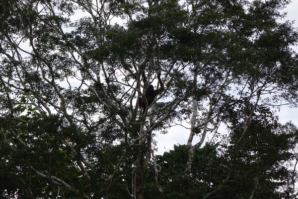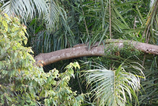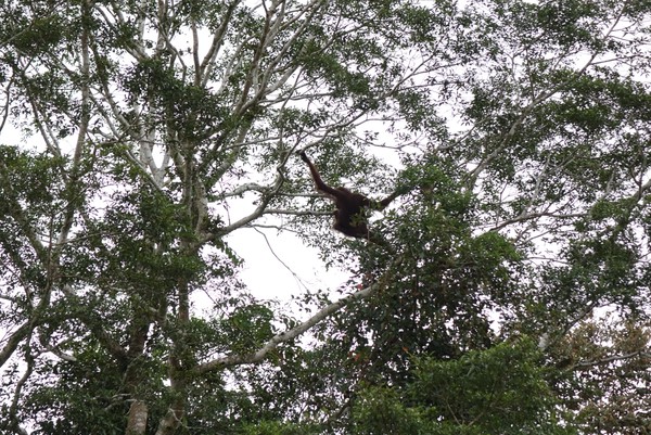 Heerlijk in een klein bootje, vanaf de rivier kijken of we wild kunnen spotten. We weten niet meer precies in welke volgorde, maar we hebben deze middag al zoveel mogen zien. Eerst wat Neusapen, zoveel meer en beter te zien dan in het Bako National park, een watervaraan in de boom… Hoe dan? Hij lag letterlijk op een tak en bijna dezelfde kleur dan de boom, maar onze gids spotte hem van een grote afstand. En daar was die… de Orang-oetan in het wild! Wauw, scoor! We hebben ze mogen zien in Kuching in het semi-wild, maar dit is toch zeker wel tien keer toffer! Hier hebben we een lange tijd naar zitten kijken. We namen een zij riviertje, hier zijn een aantal touwovergangen gemaakt voor de Orang-oetans, maar de andere apen maken er ook graag gebruik van. Hier vertelde de gids, Ryan, het verhaal van de beroemde krokodil. Hij verzekerde ons dat die niet van toeristen houdt, maar dat er een krokodil van zeker 5 meter hier rond zwemt, die twee jaar geleden drie locals heeft gedood. Oke, het “grapje” bij het instappen dat we onze handen binnen boord moesten houden, was dus niet echt een grapje… slik! En daar zag Hilde hem als eerst, super enthousiast… Een Hornbill!! Die wilde we ook zo graag zien, later bleek dat dit soort (Oriental Hornbill) echt heel veel voorkomt langs de rivier en dat hebben we geweten, hahaha! Maar ook super van genoten, eindelijk (we wilde deze twee jaar geleden in Indonesie al zien) hebben we hem gespot. Op de terug weg zagen we nog zeker in vier bomen, grote groepen Neusapen waar we in alle rust naar konden kijken. Wauw, zo genieten!!