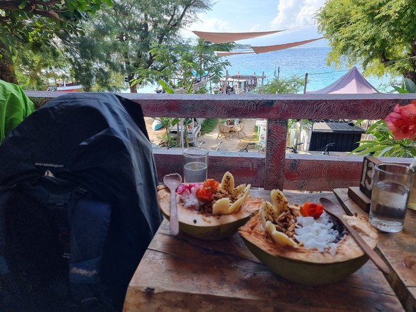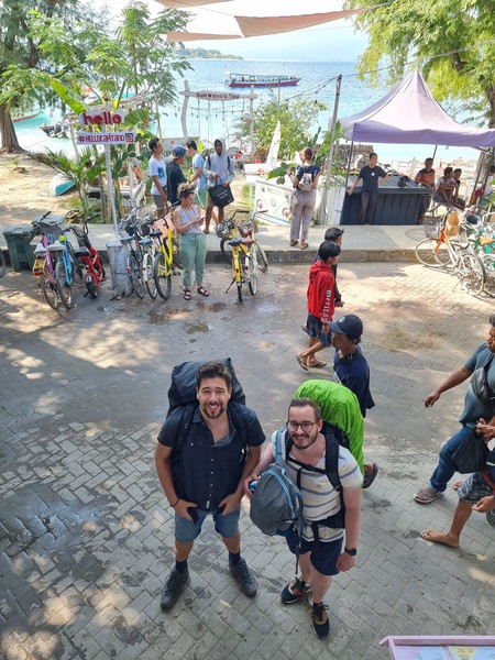 We hebben besloten naar het grootste eiland van de Gili eilanden te gaan. We dachten vanuit daar het meeste te kunnen doen en op die manier het meeste te kunnen genieten van de eilanden. Na het ontbijt pakte we een Grab naar Bangsal waar we vervolgens in een chaos van verschillende opties aan boten terecht kwamen. We wilde heel graag de local boat, voor de ervaring en omdat deze gewoon simpelweg goedkoper is. In de haven waren wat wisselende adviezen en veel verschillende plekken waar je (blijkbaar) tickets kon halen. Uiteindelijk zijn we toch een beetje in een “val” gelopen en hebben we tickets gekocht voor de fastboat. Hahaha, heerlijk hoe zulke chaotische plekken je uiteindelijk toch iets anders laten doen dan wat je van te voren bedacht had.