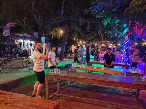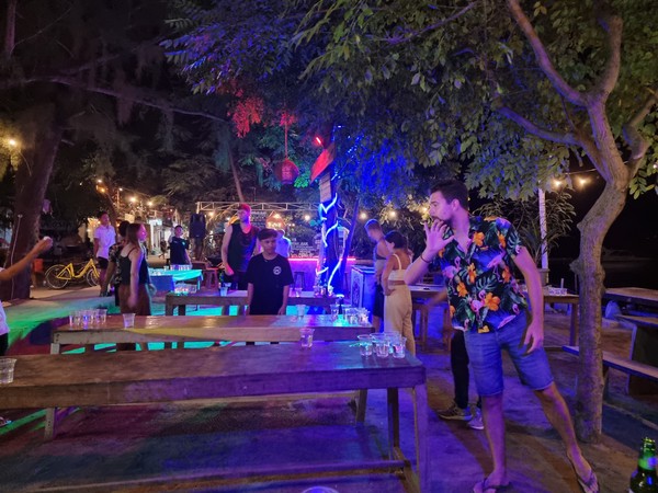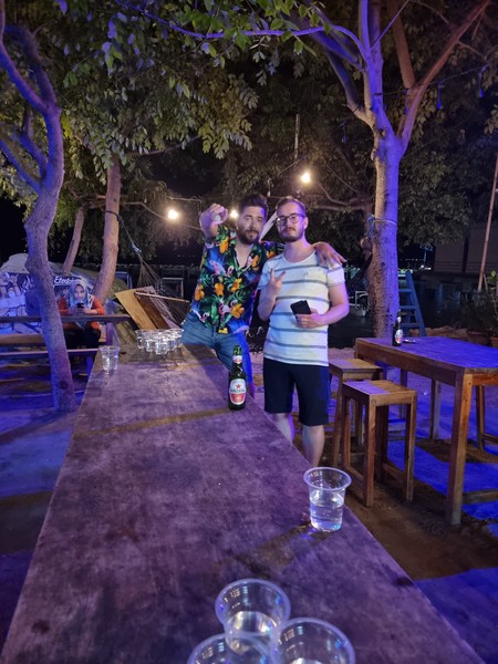 Na zo een heerlijke dag, moet je die natuurlijk ook in stijl afsluiten. We besloten ons klaar te maken voor een avondje stappen. Eerst lekker gegeten met elkaar, met de nodige biertjes! Een potje bierpong bij de buren… man man man, wat is Richard daar toch goed in! En daarna naar (blijkbaar) de club van het eiland. Hier kwamen we allemaal bekende gezichten tegen, zo ook de duikinstructrices van die dag. We hebben heerlijk gedanst en gelachen. Maar we maakte het helemaal niet zo erg laat, we waren (vooral Peter en Hilde) goed kapot van de indrukken van vandaag.