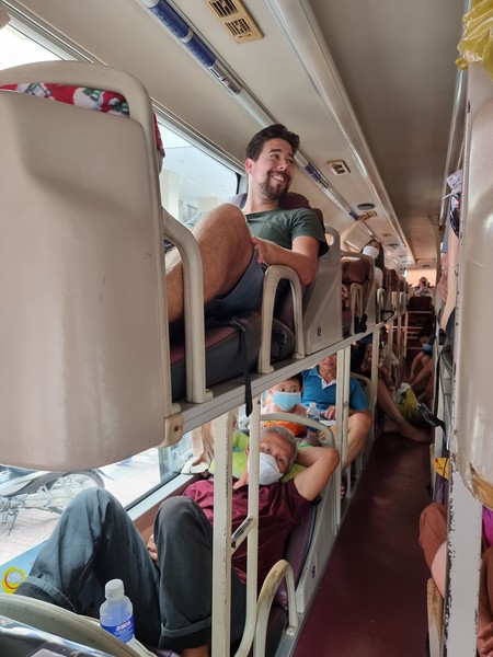 Na het museum scheiden onze wegen even, omdat er ook wat persoonlijke dingen geregeld moesten worden. Dezelfde dag nemen we nog de bus naar Mui Ne, wat een rit is van 5 uur, die om 3 uur gaat vertrekken. De bushalte is bijna naast ons guesthouse dus we hadden onze baggage daar gelaten en halen die op net voordat we de bus gaan. En wat een ervaring is deze busrit. De bussen die voor lange afstanden worden gebruikt zijn namelijk niet de standaard bussen die wij kennen, maar bestaan uit een soort ligstoelen. Deze ligstoelen zijn helemaal ingebouwd, en helaas wel op vietnamese lengtes, wat vooral Linda en Richard merkten. Je doet ook voordat je de bus in stapt je schoenen uit en doet deze in een plastic tasje wat je bij je stoel houd. Je hebt ook geen plek om je kleine tas kwijt te kunnen, dus die moet je ook maar op schoot houden of bij je voeteneind leggen, waar je al weinig ruimte hebt. Toch was het comfortabeler dan genoeg andere busreizen die we tijdens onze reis hebben gehad! Na 5 uur rijden komen we aan in het mooie Mui Ne, wat eigenlijk heel weinig voorsteld. Het is een plaatsje wat aan het water ligt met strand, wat water activiteiten te doen zijn, en mooie duinen hebt die je kan bezoeken. Is kijken wat dit stadje ons gaat brengen!