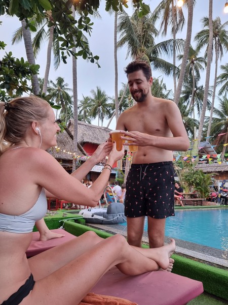 Wat we al schreven, dit werd en was een chilldag. Rustig opgestaan met zijn allen en eigenlijk waren we allemaal vrij verbaast hoe rustig de nacht en de ochtend verlopen waren. De ochtendtour, vertrekt elke dag om 4.30 en we hadden verwacht daar iets van te horen. Dat viel gelukkig alles mee! Lekker ontbijten met elkaar en van de ontbijttafel verplaatste we ons naar de ligbedjes. We lagen daar rond 9.30/10.00 en zijn er tot aan 18.00 uur niet weggegaan. Hahaha, echt chillen dus. We hebben onze ogen uitgekeken in de ochtend, want rond de tijd dat wij op de ligbedjes plaats namen, werd het drukker en drukker van iedereen die nu de kamer uitkwamen. Stuk voor stuk met nog genoeg alcohol in het bloed, wat de één toch beter scheen te kunnen hebben dan de andere… hahahah! Die dag hebben we lekker met wat mensen gebeld en verder dus echt asociaal helemaal niks gedaan.