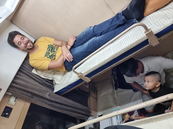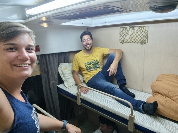 De volgende ochtend namen we bij het ontbijt afscheid van Linda, zij bleef hier tot de nachtbus vanavond ook naar Hoi An. Wij hadden de trein al geboekt vanuit Nha Trang en moesten dus de bus eerder daar naartoe nemen om alles optijd te halen. Bus naar Nha Trang viel een beetje tegen doordat we op de achterste bank werden geplaatst waar totaal geen beenruimte was. In Nha Trang een tijdje in een goed koffietentje gezeten, waar we genoten van de koffie en lekker hebben bijschreven met onze blogs. We verplaatste ons met een Grab (wat wonder boven wonder in 1x lukte) dichter naar het treinstation waar we bij een soort halve Italiaan terecht kwamen en lekkere pasta’s gegeten hebben voordat we de nachttrein naar Hoi An namen.