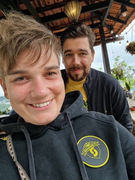 Na 6 uur in de bus, kwamen we aan in Da Lat en zorgde we ervoor dat we in het stadscentrum nog geld pinde en wij (Richard en Hilde) van ons geloof stapte en toch voor een simkaart gingen. De afstanden die we reizen zijn telkens redelijk groot, waardoor dat soort momenten top zijn om dingen uit te zoeken. Alleen moet je dan wel internet hebben… Dus dit ook meteen geregeld. Op naar het hostel met een Grab, al gaf dit nogal wat gedoe. Het is hier in Vietnam ons nog niet gelukt om dit in 1x goed en snel te regelen. Zo gek, want in alle andere landen gaat het super makkelijk en snel… goed, al met al hadden we uiteindelijk een Grab en werden we super warm ontvangen in het hostel. Hier heeft Hilde een tweede gesprek gevoerd met een school over de opties en de arbeidsvoorwaarden. Dat was nog even een gedoe doordat het toch wel wat meer een party hostel was, dan dat we dachten… maar alles werd ook hiervoor geregeld en Hilde kon even bij de buren buiten zitten met een tafeltje en een krukje. Goed gesprek, waardoor het tijd was voor bier en goede gesprekken in het hostel! Daarnaast boekte we voor de volgende dag de Canyoning, dus maakte we het niet te gek en te laat.