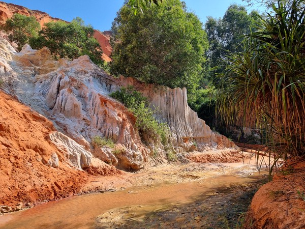 We kunnen concluderen dat de rest van de ochtend ook wat tegen viel. We reden langs de rode duinen, waar we met elkaar even opgelopen zijn. Vervolgens naar het vissersdorp, waar we ons vooral wat vreemd voelde… echt “aapjes kijken”. We stonden eerder in de weg op de vismarkt dan dat we daar wat toevoegde. Om het een beetje goed te maken, haalde we een lemonjuice bij een van de vrouwtjes. Daarna de Fairy Stream, wat leuk was en echt wel even mooi! Maar al met al was het een iets wat vreemde tour, waar we naar ons idee veel te veel betalen voor wat je krijgt. Maar gelukkig gezellig met elkaar en met Selina, waar we nog in het hostel samen mee ontbeten.