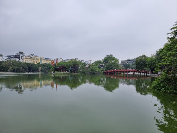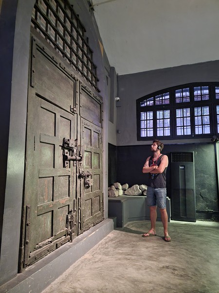 De tweede dag besloten we even een dagje stad te doen. We zijn begonnen met een Banh Mi bij het meer Ho Hoan Kiem en daar op een bankje even de drukte van de stad in ons opgenomen. In het meer staat een tempel, die veel bezocht wordt en een echte toeristische attractie is. We hadden beiden, toen we er voor stonden, niet veel trek in en omdat het zo dichtbij het hotel is, bedachten we ons dat we dit ook nog de volgende dag eventueel zouden kunnen doen. We liepen door naar Hoa Lo Prison Relic, waar we de geschiedenis van Vietnam instapte. Tegenwoordig staat er nog maar een vierde van de voormalige gevangenis. Deze is omgebouwd naar een museum, waar je meegenomen wordt in de gruwelijke verhalen en verschillende kamertjes die deze gevangenis had. Het is uit de tijd dat Vietnam een kolonie was van Frankrijk en hier Vietnamese gevangenen gehouden werden. Later werd de gevangenis gebruikt door de Vietnamese om Amerikanen in vast te houden tijdens de Vietnamese oorlog. Zoals je al leest is er in dit gebouw een hoop gebeurd en kan je je misschien wel voorstellen dat de geschiedenis die hier beschreven stond, zeer interessant was. Dus vooral Richard heeft alle tijd genomen om dit allemaal in zich op te nemen! ;)
