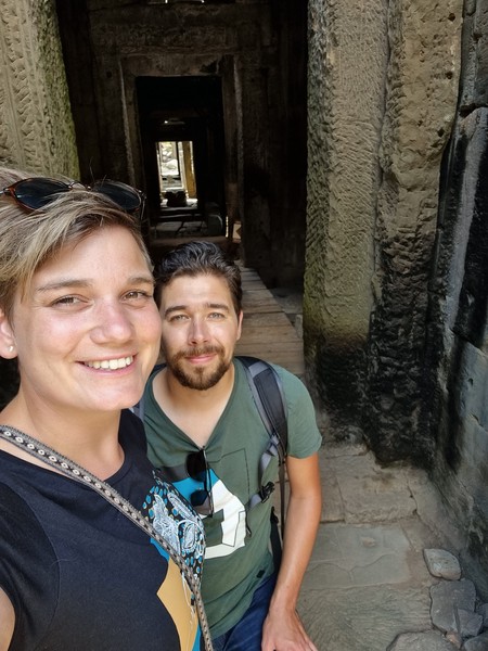 Wat? Angkor Wat! De grootste trekpleister van Cambodja, het grootste religieuze complex ter wereld en de grootste Hindoeïstische tempel ter wereld. Dit wilde we daarom ook wel goed aanpakken en de tijd voor nemen. Maar om in Siem Reap te komen moeten we eerst van Sihanoukville met de bus, de nachtbus wel te verstaan, want andere opties zijn er niet. En dit is al een ervaring opzich. De nachtbussen hier zijn omgebouwde bussen, waarin twee verdiepingen zijn gemaakt, waarbij je met 2 personen op een ruimte van 1,85 bij weinig in de breedte word neergelegd. Aangeraden word om dit ook altijd als stel te doen, want anders word je gewoon met een vreemde lepeltje lepeltje geplaatst. Hoe we weten dat het 1,85 lang was? Richard kon als hij op zijn rug lag precies met zijn hoofd en zijn voeten plat, beide wanden van het bed raken. Comfortabel is anders, maar we hebben nog verbazend goed kunnen slapen. Wat toch weer een nacht in een hostel scheelt! Gelukkig worden we in Siem Reap al opgewacht door een tuk tuk die door het hostel is geregeld. Dat scheelt weer wat gedoe wanneer je daar om 6 uur ‘s ochtends aankomt.