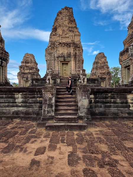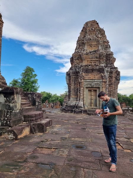 We huren een scooter en gaan op pad. Een stuk duurder dan we gewend zijn in Kampot, want hier betalen we 15 dollar i.p.v. 5 dollar per dag. We gaan op pad om de tickets te kopen voor het hele gebied, en wat denk je? We rijden gelijk al volledig verkeerd. Het ticket office is namelijk maar op 1 plek, en niet in de buurt van Angkor Wat zelf, dus wij rijden weer terug. Een mazzel van de Corona periode is dat we met een 3 dagen ticket nu 5 dagen Angkor kunnen bezoeken, wat ons nog meer de tijd geeft. Gewapend met een kaartje die we inmiddels hadden geregeld, gaan we op pad naar de eerste tempel, wat voor ons al een gigantisch uitgerekt complex is. Het is te zien dat het al een paar honderd jaar niet gebruikt wordt maar toch is er nog veel detail te zien in het beeldhouwwerk, in de muren, pilaren en beelden. We slenteren door het complex heen, wat rond het jaar 900 is gebouwd. We kunnen het maar moeilijk in woorden vatten, daarom hieronder foto’s :)