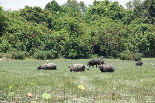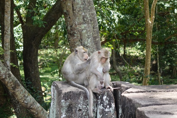 In de loop van de middag begint het helaas flink te regenen dus gaan we ergens zitten om te eten. Ook kopen we (na wat hard onderhandelen) een boek die als gids dient voor deze regio. Nu kunnen we, naast dat we rustig langs de tempels lopen, ook de tijd nemen om te lezen over deze bijzondere plekken. Wanneer zijn ze gebouwd? Wie heeft ze gebouwd? Wat heeft de derde steen bij het 5de gebouw in het midden betekend voor de keizer? Richard leest er rustig doorheen terwijl Hilde zich meer in de omgeving op laat gaan en het probeert vast te leggen op camera. Een heerlijke manier om deze omgeving te ontdekken. Op de terugweg van deze dag rijden we door Angkor Thom heen (het grootste gebied met tempels bij elkaar) en zien we in de verte een glimp van Angkor Wat. Voor nu blijft het nog even een glimp, het bezoeken ervan bewaren we voor de laatste dag.