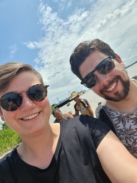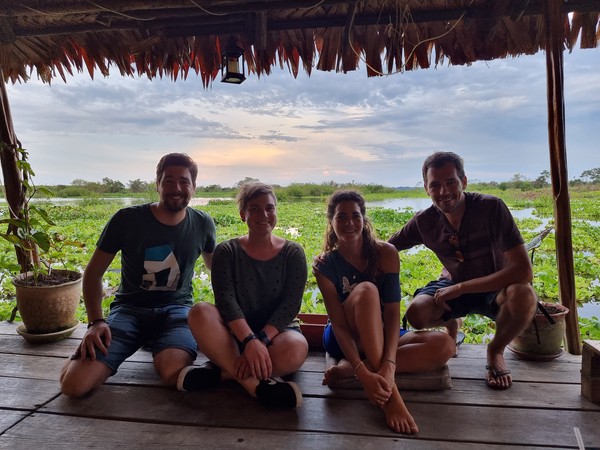 Op naar Iquitos. We zijn eerst vanuit Huaraz met de bus terug gereden naar Lima, daar een overheerlijke pizza gegeten en een goede nacht geslapen. De volgende ochtend rustig een ontbijtje gegeten en vervolgens om 11 uur de taxi gepakt naar het vliegveld. Na een korte vlucht, kwamen we aan in Iquitos. En… wat denk je… daar stonden Martijn en Belén op ons te wachten. Met tassen op geknuffeld en de mondkapjes direct afgegooid. Even een sidenote: in Peru moet je een mondkapje dragen en wanneer je geen medische hebt een dubbele mondkap. Dit betekent overal, dus ook op straat. Inmiddels waren we daar goed aan gewend, maar Martijn en Belén hadden er geen op… Iquitos is iets anders dan andere steden. Dus mondkapjes af en wat een bevrijding… aangezien het hier direct een ander klimaat is. Warm en vochtig.