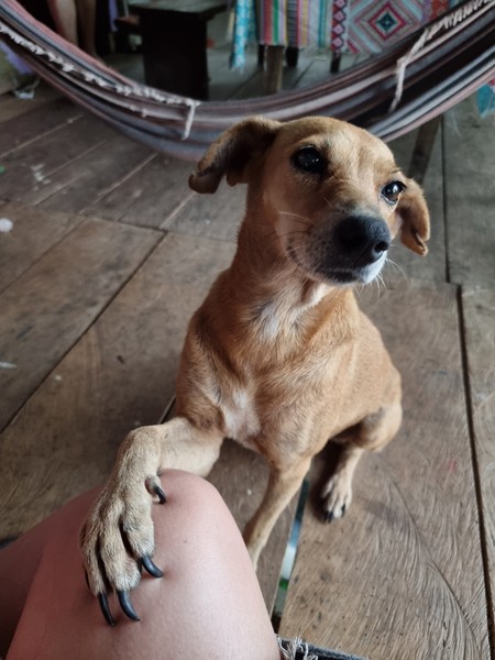 We pakte de lokale bus naar de stad, om eerst een drankje te doen en daarna pas naar het appartementencomplex te gaan waar Martijn en Belén nu verblijven. Dit zit iets verder uit het centrum en daarom wel handig om eerst de stad in te gaan. Hilde herkende de boulevard, super grappig. We kwamen in een tentje te zitten wat op het water drijft en uitzicht heeft op de Amazone rivier. Welkom in de Amazone Richard en welkom terug voor Hilde! In het appartementencomplex wachtte een goed bord lasagne op ons en dat was het eerste moment dat we kennis maakte met Pochi!!