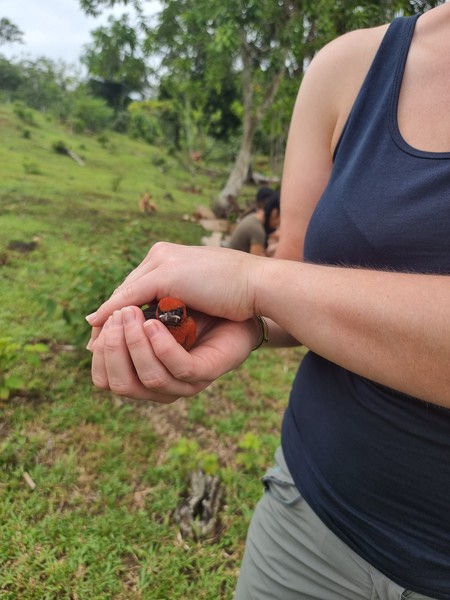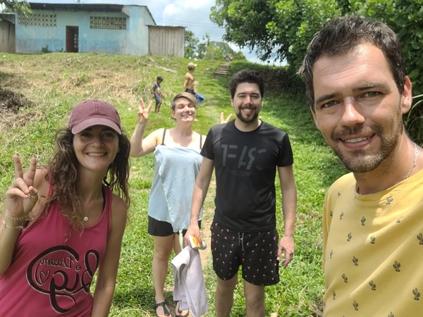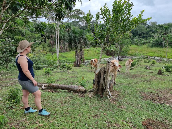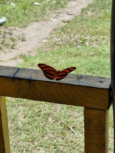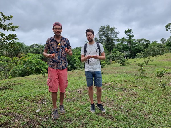 Eenmaal terug gingen we ontbijten en werd er afgesproken dat we mee konden (dit keer ook met de andere vrijwilligers, dus met een groep van zeven personen) naar het huis van Lies. Lies is een meisje hier die naar de buitenschoolse opvang komt. Zij komt uit een groot gezin en haar gezin heeft een huis in zone 1, waar we eerder over schreven, maar daarnaast ook een huis in de jungle. Dit is ongeveer een halfuur lopen vanuit het dorp. Heel tof en heel mooi om deze ervaring ook nog mee te pakken. Martijn ging met ons mee en Belén bleef achter. Zij hadden dit al een keer gedaan en Belén had nog wat dingen te regelen in het dorpje. Wij waren heel blij met Martijn, zodat (wanneer we dingen niet begrepen) dit vertaald kon worden. Het was super gaaf om deze plek te zien. Het is eigenlijk een soort van boerderij op een open plek in de jungle. Er staan allerlei planten en bomen met hun eigen vruchten en bloemen, waarvan veel eetbaar zijn. Er lopen koeien rond en er scharrelen kippetjes. Op die open plek is ook een watertje, wat voelt als een paradijsje zo midden in de jungle. Om je heen dus de dieren die zij houden, maar ook de dieren van de natuur. De vogels in alle kleuren en maten vliegen om je heen en laten zich mooi bewonderen.