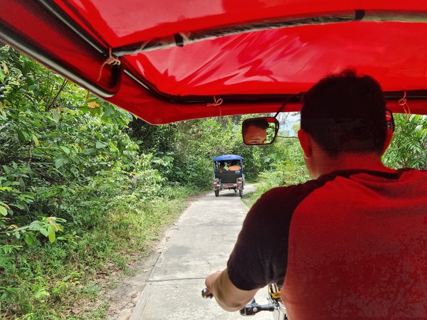 Deze ochtend stond in het teken van Barrio Florido, een paar dorpen verderop. Waar we met een boot van een bewoner van het dorp heen gingen. Daar pakte we een TukTuk die ons bracht bij de Ranch. Een super mooie plek, waar je verkoeling kan zoeken. Dit is de plek waar Martijn en Belen de kids naartoe mee hebben genomen als uitje. Mooi om deze plek te zien en heerlijk om de verkoeling hier even op te zoeken. Na deze mooie en relaxte plek pakte we de TukTuk naar een eeuwenoude boom en daarna door naar een uitkijkpunt over de Amazone. Deze plekken zijn vrij toeristisch! Er kan gereden worden en er komen veel mensen uit Iquitos voor deze en nog andere attracties hier. Heel anders dan het afgelegen en echt authentieke Santa Maria De Ojeal, waar niet gereden kan worden en geen toerist te bekennen is. Voordat we een boot terug namen, hebben we onszelf nog even getrakteerd op een koud biertje.