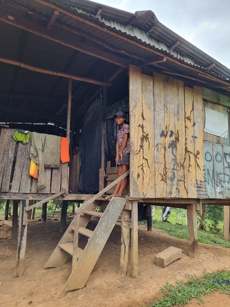 We startte met een rondleiding door het dorpje. Nog een openbaring voor ons, want hier lijkt Covid helemaal niet te bestaan! En weet je wat… we vonden het heerlijk. Iedereen geeft hier een knuffel en een kus aan elkaar. Hoe we overigens ook in het huis begroet werden door alle andere vrijwilligers. Heerlijk die vrijheid en die sociale contacten, wat hebben we dat gemist! Het dorp bestaat uit 3 zones, waarvan de buitenschoolse opvang op zone 1 staat. Martijn en Belén hebben dit project gevonden rond de kerst, waarbij ze geholpen hebben met de kerstviering. De school ging daarna dicht en zo ook de buitenschoolse opvang. Vanaf half januari zijn zij elke week een aantal dagen daar te vinden om vrijwilligerswerk te doen. In die tijd hebben zij ook Pochi onder hun hoede genomen, de puppy die zij hebben gevonden in het dorp in zeer slechte conditie. Over Pochi en over het project @croquetamazona die zij hebben opgericht, willen wij uitweiden in een andere post.