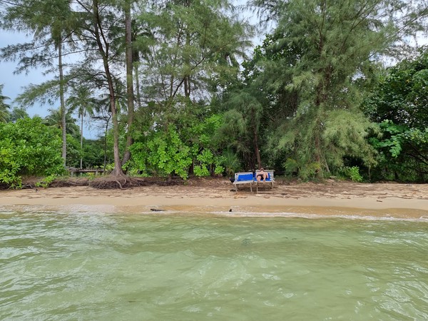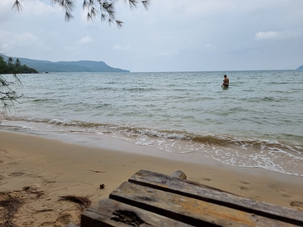 Na Kampot hadden we uiteraard, na al die avonturen, wat rust en relax momenten nodig! ;) We hadden geregeld dat we met de bus in Sihanoukville zouden komen, om daar vervolgens de boot naar Koh Rong te nemen. Alles ging eigenlijk vrij soepel en we kwamen zelfs net op tijd voor de vroege boot aan. We hadden via Booking.com een bungalow op de Lonely Beach geboekt, waarna we direct een bericht kregen over hoe je ongeveer bij deze bijzondere en afgelegen plek zou kunnen komen. Een gehele beschrijving, waar we nog niet helemaal zeker van waren. Ook de mensen van de speedferry waren nog niet echt overtuigd van hoe we er moesten komen, aangezien ze allemaal een ander advies gaven over waar we uit moesten stappen. Er zijn vanuit Sihanoukville drie stops (althans met deze maatschappij) waar ze je af kunnen zetten. De eerste stop is een ander eiland en daarna twee stops op het eiland waar wij wilde zijn. Als enige van de gehele boot stapte wij bij de laatste stop uit… Daar werden we aan het einde van de pier uiteraard meteen opgewacht. Het was echter wel maar één persoon, die direct zei “O Lonely Beach, dat is moeilijk en ver weg. Je kan gebracht worden, maar ik heb nu maar één motortaxi, je kan scooters huren voor $20 per dag en je kan ook wel met de auto gebracht worden… maar dan moet je nog zeker 20 minuten lopen. Maar ga anders eerst wat eten, met eten kan je beter beslissingen maken!” Oke deze man had over dat laatste gedeelte zeker gelijk… Hilde had uiteraard om dit tijdstip (was inmiddels 13.30) trek en kan dan altijd slecht beslissingen maken. Maar de rest moest even op ons inwerken… we bestelde wat te drinken en wat te eten en waren eigenlijk een beetje uit het veld geslagen. Dit moesten een paar relaxte dagen worden en niet met al dit gezeik er omheen. We hadden de scooter gisterenavond in Kampot ingeleverd voor $5 per dag, en dit was gewoon vier keer zoveel! Oke… een eiland, maar dan nog $20 en dan ook nog eens voor 3 dagen, waarin we het maar twee keer zullen gebruiken. Namelijk de heen en terug reis.