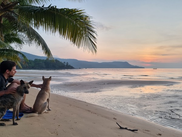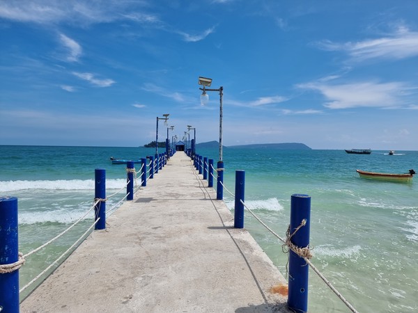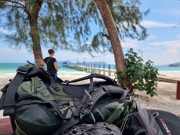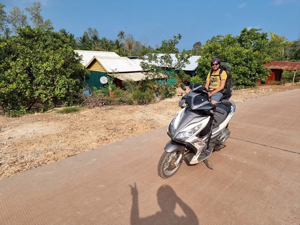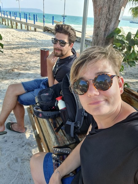 Op de vierde dag, na drie nachten, was het tijd om afscheid te nemen van dit stukje paradijs. In de ochtend nog rustig ontbeten en ingepakt en toen de scooter opnieuw bestegen. De terugweg verliep soepel, doordat het wat geregend heeft de laatste dagen was het mulle zand minder mul. Dus dat was perfect met het rijden. Eenmaal bij de pier, waar we ruim op tijd aankwamen, hebben we onze scooters ingeleverd en onze ticket naar het vaste land laten zien. De man van de scooters gaf aan dat deze om 13.30 uur zou vertrekken, dus alle tijd (het was rond 12 uur) om te lunchen. Na de lunch zijn we op een strategische plek gaan zitten om alle boten aan te zien komen. Wat wij niet wisten is dat er moeilijk veel verschillende maatschappijen af en aan varen. Allemaal in blauwe shirts, waarvan wij dachten dat dat ons herkenningspunt zou zijn. Na vele boten te hebben zien komen en gaan was het inmiddels 14 uur. Oke, het is Cambodja… hij zou toch nog wel komen… Dan om 14.15 was er ineens een man die tegen ons zei dat we die boot moesten hebben. Huh, deze? Deze is niet eens van een maatschappij… ja, rennen! En dat deden we, maar toch vertrok deze boot dood leuk voordat we deze konden vragen ons mee te nemen. Oke?! En nu?! Dezelfde man vertelde ons toen dat de volgende boot om 16 uur zou vertrekken, ja echt? Maar hoe dan, we hebben elke boot gecheckt, hoe hebben we het nu kunnen missen. Verslagen gingen we zitten en wisten we even geen raad. Hilde ging een rondje lopen, kijken of er ergens WiFi zou zijn. Een restaurant verderop had dit inderdaad, dus daar een drankje gedaan en alvast een accommodatie voor de nacht geboekt. Zo wisten we in ieder geval waar we straks heen moesten als we aan vaste land aankwamen. Bij het afrekenen vroeg de man aan Richard of we wel de boot hadden laten weten dat we in de middag met ze mee wilde. Uhm, nee, niemand heeft dit tegen ons gezegd bij de pier. Deze man was super lief en behulpzaam, hij heeft voor ons de maatschappij gebeld en laten weten dat wij graag de boot van 16 uur wilde hebben. Weer onduidelijkheid welke boot het nu precies zou gaan zij en dus bij elke boot heen en weer de pier opgelopen. En jawel, uiteindelijk hadden we een boot te pakken. Man wat een chaotische en onduidelijke middag! Maar het is ons allemaal weer gelukt en we kwamen aan in een hele fijne kamer, met een super fijne douche en een heerlijk bed… dit keer ZONDER vleermuizen. ;)