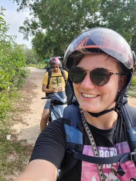 Maar de man had gelijk, na het eten werd de frustratie minder en konden we het weer wat meer in perspectief zien. Motorbike huren, lekker stukje touren… we gaan het avontuur aan! Alleen Hilde moest uiteraard wel even met de man gaan babbelen over de prijs. Dus Richard kreeg de opdracht bij de spullen te blijven en zich alvast in te smeren en Hilde ging met haar big smile naar de meneer van de scooters. Na een vlotte babbel, veel smeken en een beetje humor kreeg Hilde de scooters voor elk $15 per dag mee! We waren tevreden en gingen op pad!