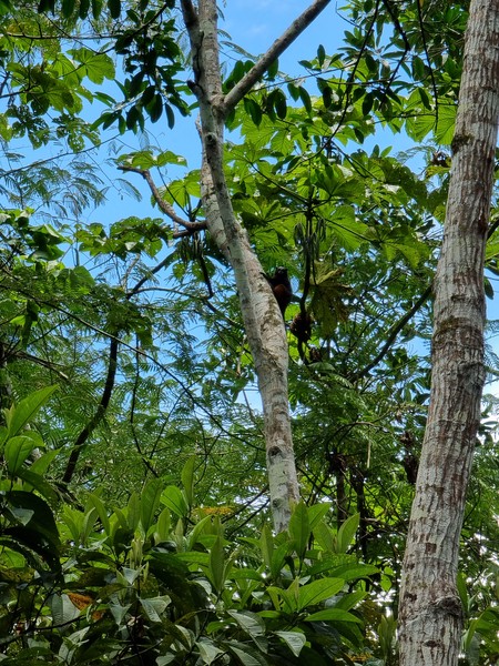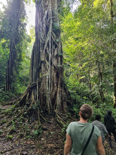 Deze dag begon om 6.00 uur, voor het ontbijt ziplijnen en abseilen. Materialen aandoen en de jungle in, naar de eerste boom. We moesten eigenlijk langs een wespennest, Hilde liep voorop, maar die had de dag ervoor al aangegeven daar weinig trek in te hebben. De kokkin was de twee dagen geleden voor het eerst wezen ziplijnen en als laatste (van de groep van 4) langs het nest gelopen en 4 keer gestoken achter elkaar. Hilde en de rest hadden hier eigenlijk geen lekker gevoel bij en Darwin houdt gelukkig ook niet van wespen. Daarom toch (na twee keer een soort startsein om te gaan rennen genegeerd te hebben) een andere weg vrij gemaakt met de machete. Vier toffe ziplijnen verder, de ene harder en langer dan de ander, moesten we vanaf een redelijke hoogte naar beneden abseilen. Blijft altijd weer even spannend, maar wat is het toch tof om die adrenaline op te zoeken!