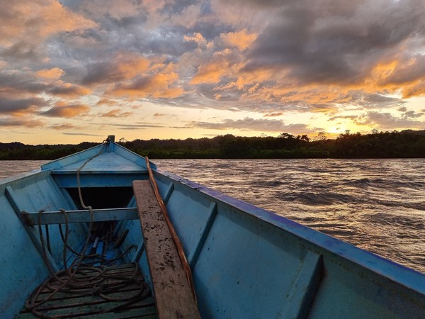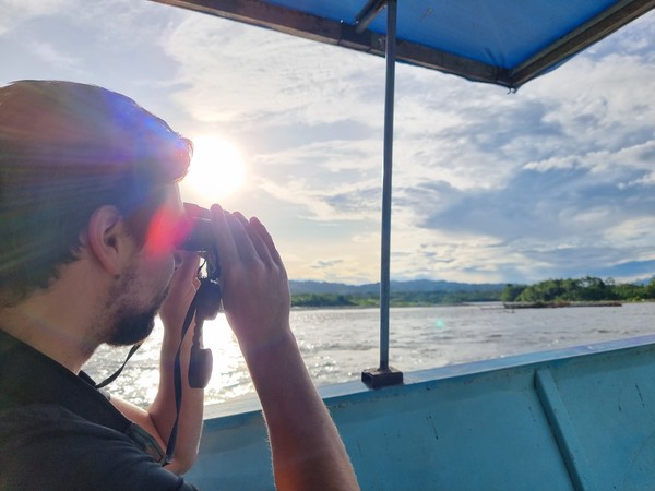 Na een goede nacht was Richard dit keer aan de beurt om niet lekker te worden, hij heeft dan ook het ontbijt geskipt en het rondje door de tuin om te luisteren naar de verschillende werking van de planten die daar stonden. Gelukkig nam Hilde nog een paar mee naar binnen om een korte uitleg te geven over de planten die zij zeker de moeite vond om te laten zien! We gingen op weg naar de lodge verder in de jungle, met geen warm water en elektriciteit. ;) Onderweg was het idee hetzelfde als op de eerste dag, als we iets hoorde of zagen, stopte we de auto en bekeken we de verschillende dieren. Verder zijn we gestopt bij een Kolibri farm, waar we een ronde hebben gelopen en ook nog een gave spin en een alligator hebben gezien. En niet te vergeten, Richard zijn favoriet: leaf cutter ants. Het laatste stuk was met de boot over de rivier Madre de Dios (moeder van god), voordat we de boot opstapte moesten we nog even laarzen passen… later werd ons pas echt duidelijk waarom we die eigenlijk wel nodig hadden! ;)