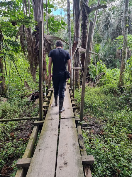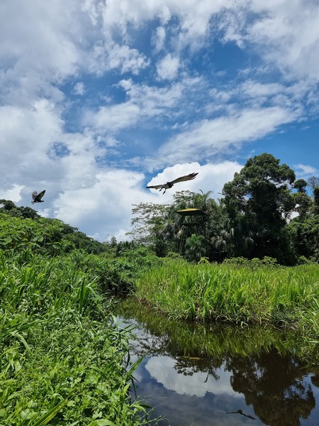 Na de uitkijkpost die in dit gebied staat, hadden we de keus. Terug en nog een beetje rondlopen, of Darwin’s way… Nou daar hoefde we allemaal niet heel lang over te twijfelen. Darwin’s way natuurlijk!! Hier werd het dan ook bekend waarom we laarzen moesten dragen. We kwamen in steeds diepere watertjes te staan en steeds dichter begroeide jungle. Heel vet!! Want hierdoor zagen we nog drie verschillende apen en hebben we (zeer waarschijnlijk) een Capibara horen weg rennen. Het was een heel avontuur om op deze manier door de dichtbegroeide jungle te lopen, met letterlijk het water in je laarzen. Het laatste stukje was volledig door de knieën omdat je anders niet onder het begroeide deel door kwam. Hier was Hilde op het laatst een beetje klaar ermee doordat haar heupen niet lekker mee werkte… Maar, wat bleek, dit was het aller laatste stukje en ineens waren we er weer volledig uit. Wat een avontuur en wat hebben we hier van genoten met zijn allen! Darwin’s way was de beste optie die we hadden kunnen kiezen!