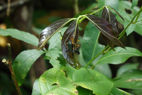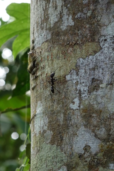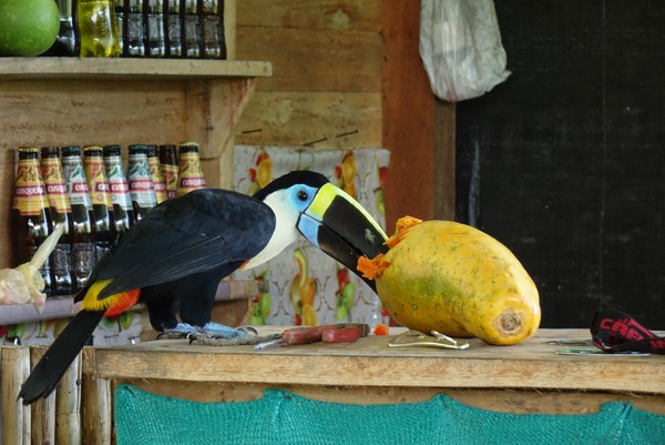 Na een goede nacht was Richard dit keer aan de beurt om niet lekker te worden, hij heeft dan ook het ontbijt geskipt en het rondje door de tuin om te luisteren naar de verschillende werking van de planten die daar stonden. Gelukkig nam Hilde nog een paar mee naar binnen om een korte uitleg te geven over de planten die zij zeker de moeite vond om te laten zien! We gingen op weg naar de lodge verder in de jungle, met geen warm water en elektriciteit. ;) Onderweg was het idee hetzelfde als op de eerste dag, als we iets hoorde of zagen, stopte we de auto en bekeken we de verschillende dieren. Verder zijn we gestopt bij een Kolibri farm, waar we een ronde hebben gelopen en ook nog een gave spin en een alligator hebben gezien. En niet te vergeten, Richard zijn favoriet: leaf cutter ants. Het laatste stuk was met de boot over de rivier Madre de Dios (moeder van god), voordat we de boot opstapte moesten we nog even laarzen passen… later werd ons pas echt duidelijk waarom we die eigenlijk wel nodig hadden! ;)