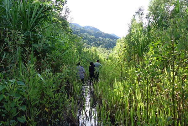 Optijd weer op, om 5.30 in de boot om de papegaaiachtige klei te zien eten. Dit doen ze om hun snavel goed sterk en krachtig te houden. Heerlijk door de verschillende verrekijkers en de vrouw van Darwin ;), de mooie en kleurrijke papegaaien gezien, onder het genot van een mooie lucht achter ons die steeds meer begon te veranderen. Terug voor het ontbijt en na het ontbijt vertrokken we bijna direct weer naar het meer. We hadden hier allemaal nog geen voorstelling van, maar we gingen eerste een stukje met de boot, daarna te voet (met weer veel verschillende planten waar we informatie over kregen en de nodige vogels onderweg) verder naar het meer. Het meer was inmiddels niet helemaal meer een meer, maar meer een smalle rivier tussen allerlei plantengroei (een beginnend moeras). Hier gingen we doorheen op een bamboe vlot, wat een enorme rust en vredig gevoel gaf. Hier ook weer van alles tegengekomen, waaronder een vogel die een zeer bijzonder geluid maakte! Hhahahaa, waar we vooral erg om hebben gelachen (wat we overigens sowieso heel veel hebben gedaan met de groep!).