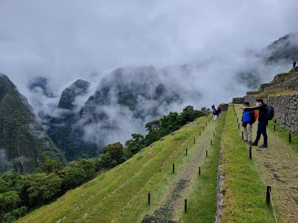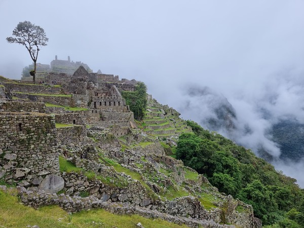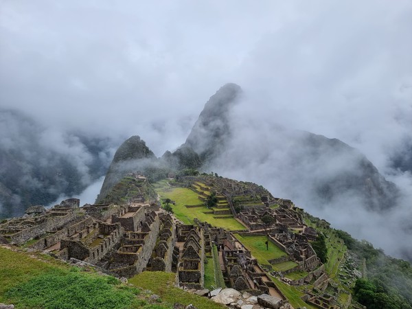 Daar boven aangekomen, gaat er een wereld voor Richard open. Wat een uitzicht wanneer je van boven op Machu Picchu uitkijkt. Een gigantisch complex, wat al honderden jaren goed is gebleven. Met de foto’s van hoe het overgroeid er uit zag, en de mist waar we deze dag mee te maken hadden, kan je goed voorstellen dat het zo lang heeft geduurd voordat Machu Picchu ontdekt was. Nog even voor de beeldvorming, Machu Picchu is gebouwd rond 1450 AD, en de staat waarin het ontdekt was, was ontzettend goed. De gebouwen die hier staan kunnen de 20 meter regen per jaar makkelijk aan, net zoals de aardbevingen die daar ook vaak genoeg voor zijn gekomen in de tussentijd. Het was mooi om via de gids ook een schat aan informatie te krijgen over wat er daar is gebouwd en wat we wel en niet weten over de ruïnes. Ook de informatie over de manier van bouwen en dat het hierdoor dus nog steeds zo goed bewaard is gebleven. Er is zoveel over te zeggen en te schrijven, maar het daadwerkelijk bezoeken maakt het pas levend en heel bijzonder… Voor als je het nog nooit gezien hebt, en je ziet deze foto’s, word je dan al enthousiast? Een tip, kom niet in het regenseizoen zoals wij hebben gedaan, dan kan je de wolken gewoon skippen :)