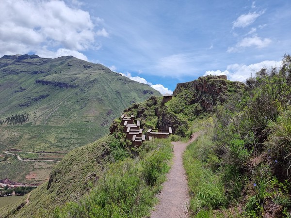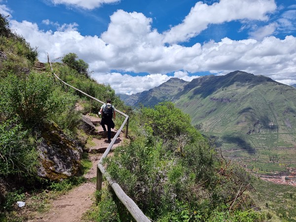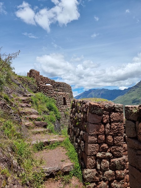 Maar dan, sta je opeens bovenaan de berg met prachtige uitzichten en Inca ruïnes waar je doorheen kan lopen. Wat het wachten uiteindelijk volledig de moeite waard maakte! Een wandeling van ruim 3 uur van boven naar beneden, met duidelijke en soms wat minder duidelijke routes die je kan lopen. We hadden allebei een route als deze niet helemaal aan zien komen. Maar dat maakt dit soort tripjes op eigen houtje een volledig avontuur en maak je de mooiste herinneringen! Erg mooi bewaard gebleven ruïnes (die Inca’s wisten wel waar ze mee bezig waren als het om bouwen ging) en dat samen met verschillende mooie routes en prachtige uitzichten op de vallei. Eenmaal terug in het dorp, met 3 uur volledig in de zon gelopen te hebben, heeft Hilde nog een mooie Alpaca hoed gekocht… onder het mom van “beter laat dan nooit!”.
